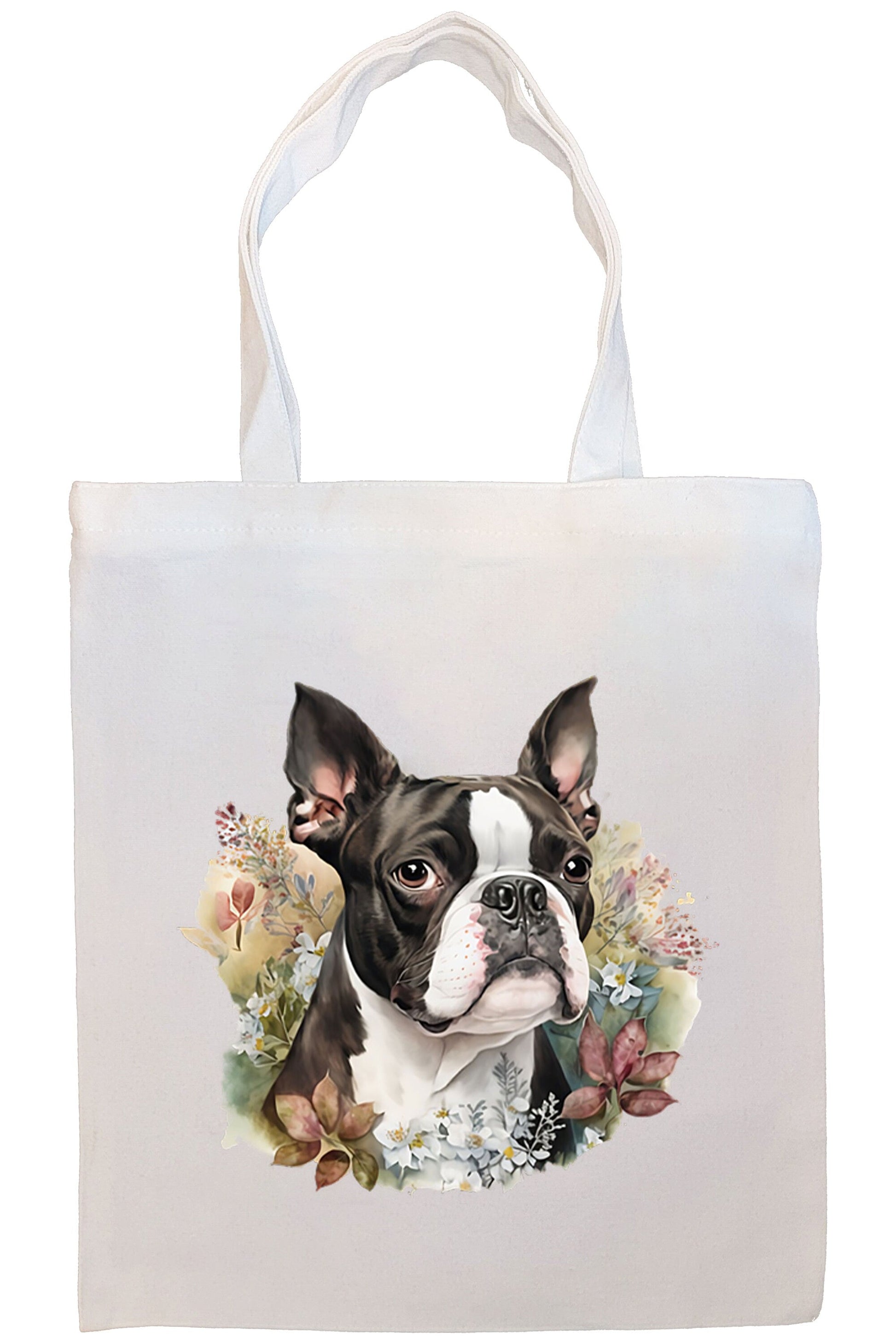 Canvas Tote Bag, Zippered With Handles & Inner Pocket, "Boston Terrier"