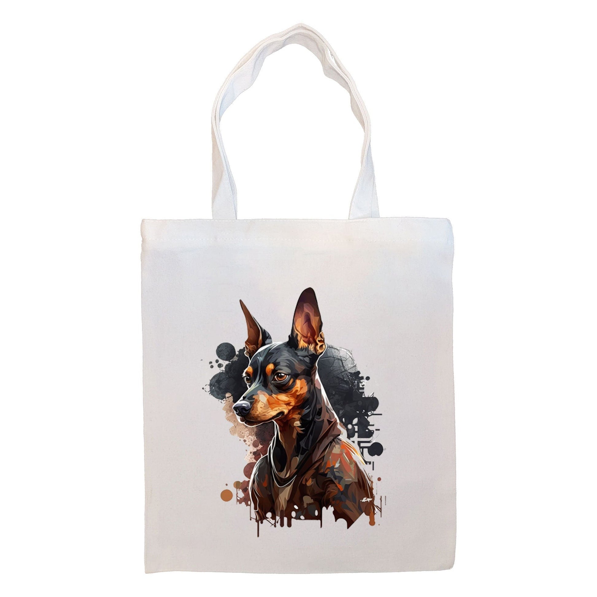 Canvas Tote Bag, Zippered With Handles & Inner Pocket, "Miniature Pinscher"